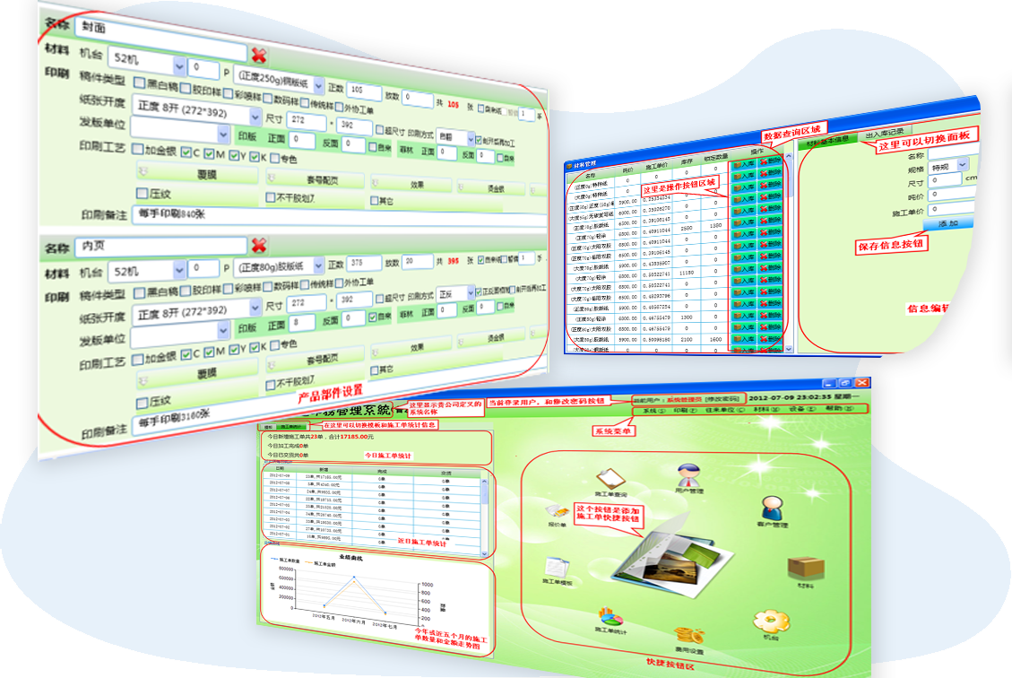 幫助印刷企業(yè)解決算價(jià)不準(zhǔn)、多個(gè)業(yè)務(wù)員算價(jià)不一致、印刷安排不智能的問題。靈活的算式公式編輯功能,支持階梯價(jià)、固定價(jià)、超尺寸價(jià)格等規(guī)則設(shè)置。包括材料管理、印刷單管理、機(jī)臺管理、客戶管理等功能。